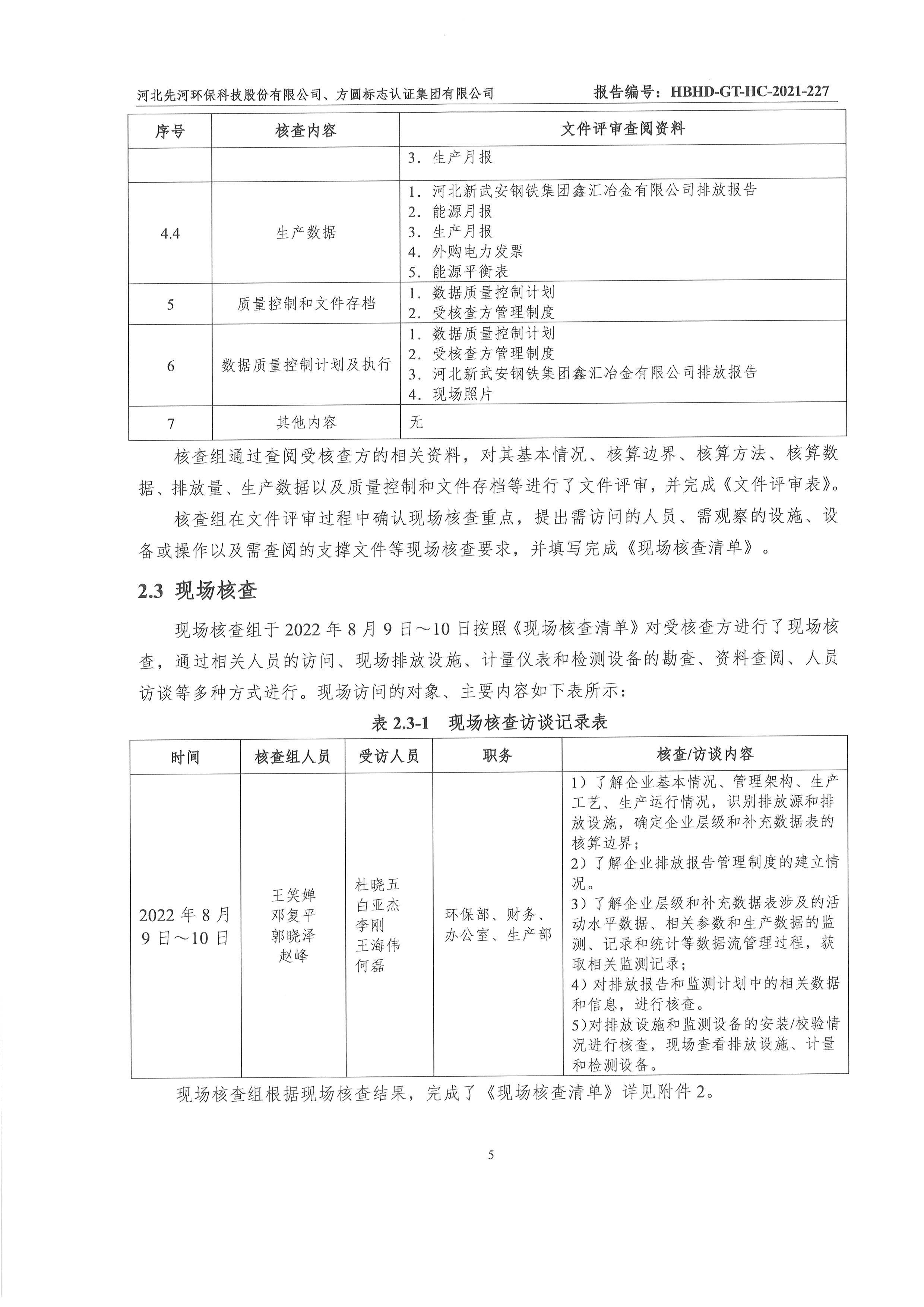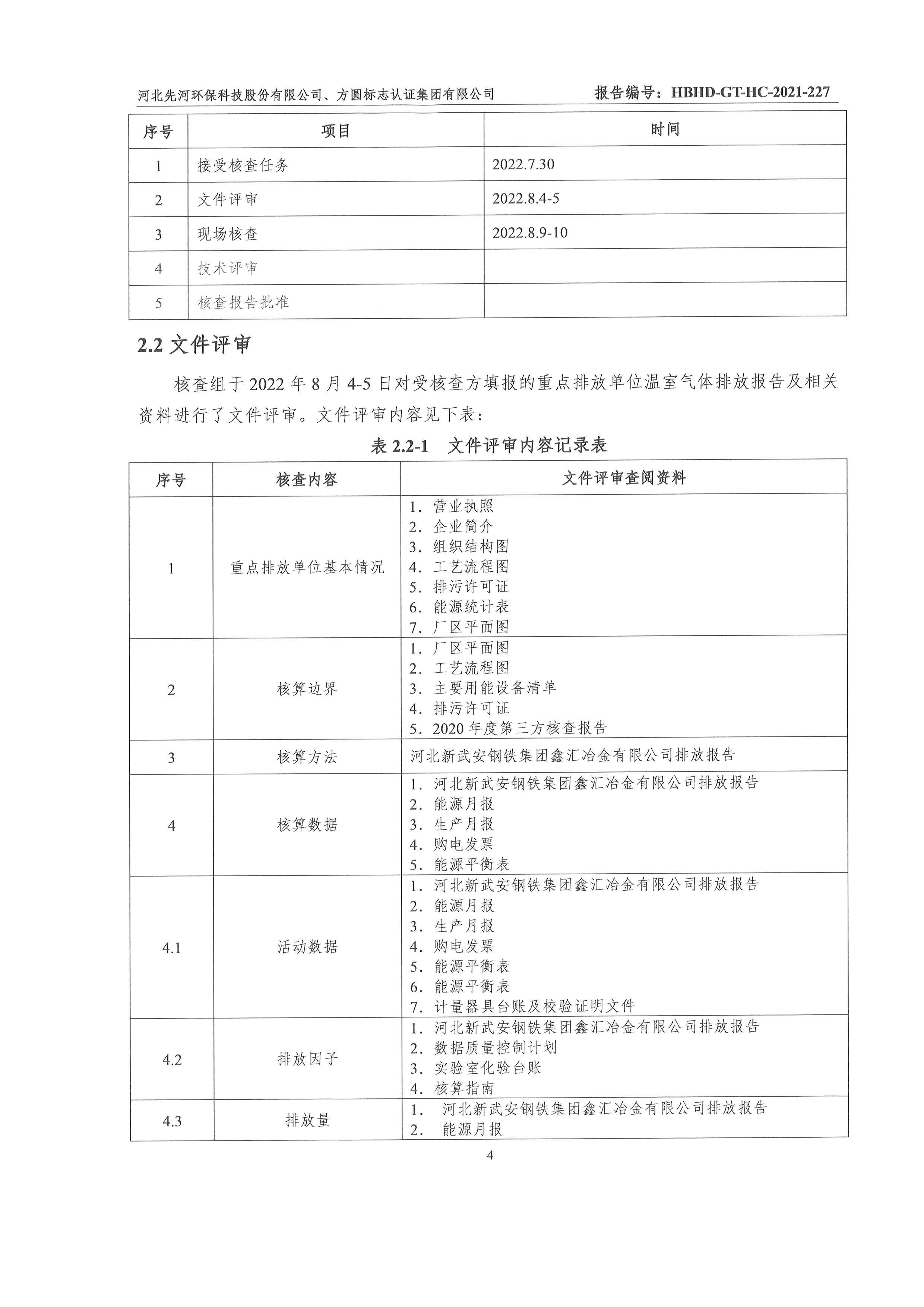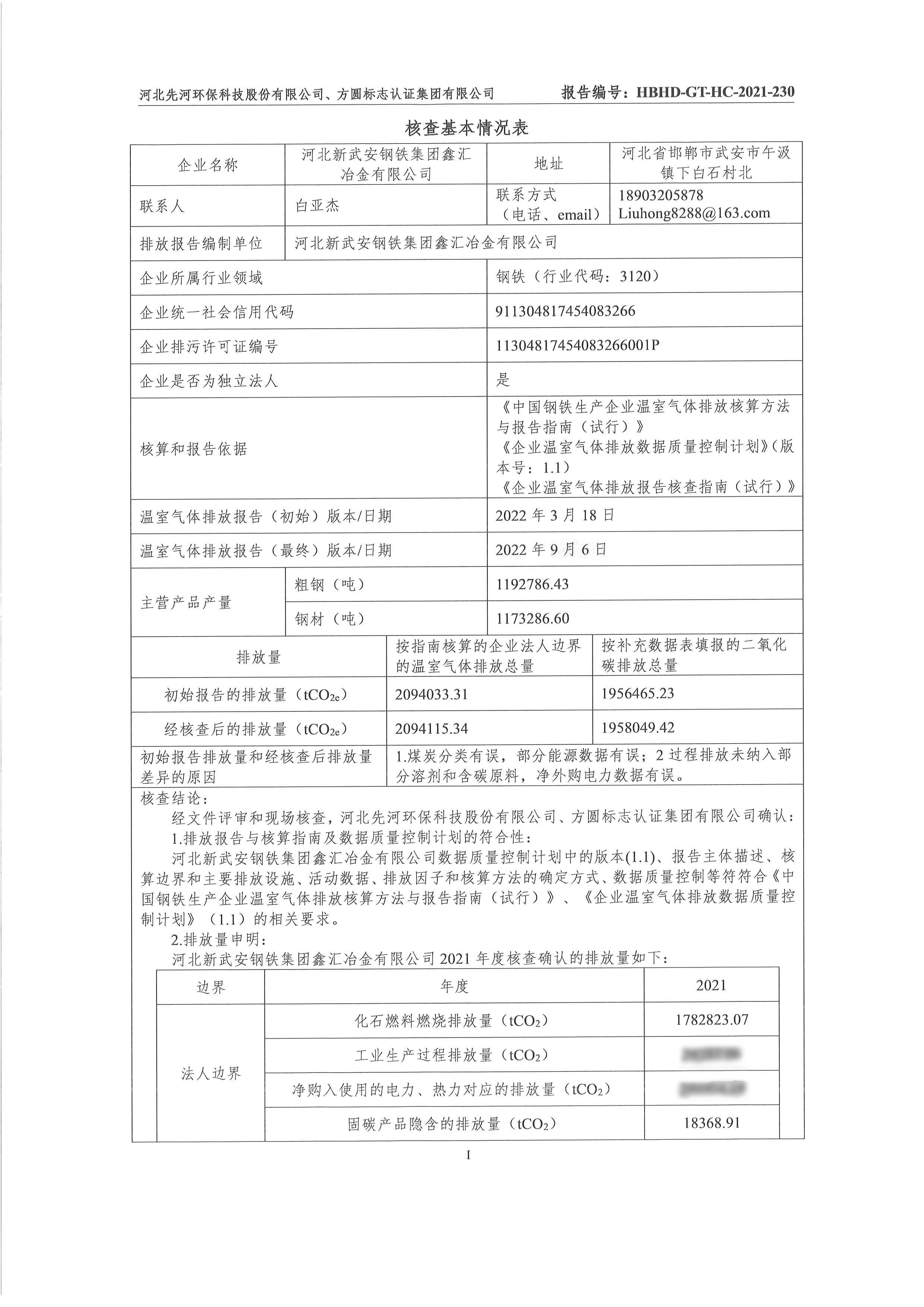 2022年河北新武安鋼鐵集團(tuán)鑫匯冶金有限公司碳排放核查報(bào)告